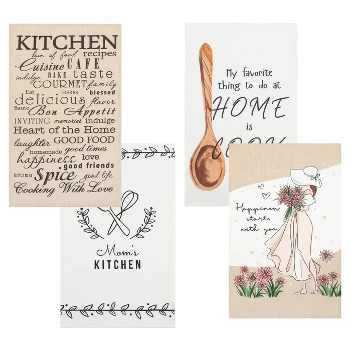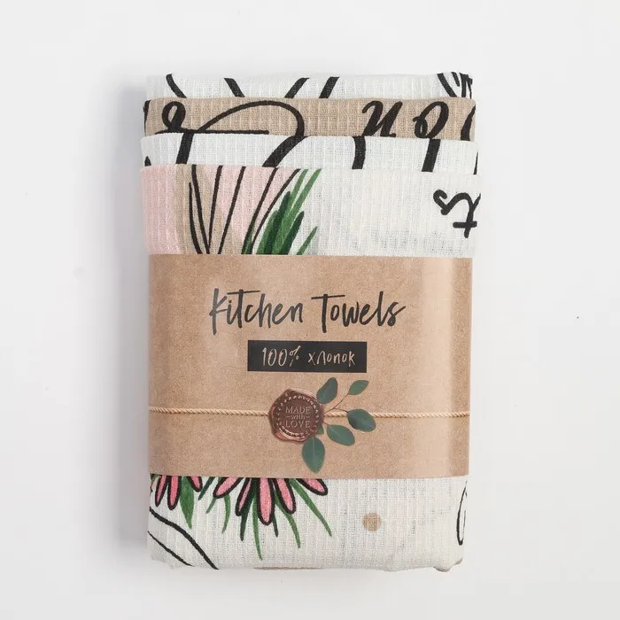 Набор кухонных полотенец Доляна Happiness, 35х60 см -4 шт, 100% хлопок, вафля 160 г/м2 — Характеристики