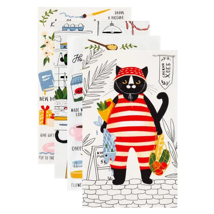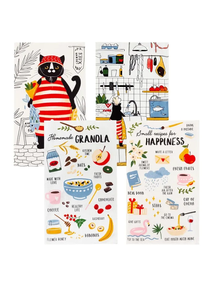 Набор кухонных полотенец Доляна Happiness, 35×60 см - 4 шт., 100% хлопок — Характеристики