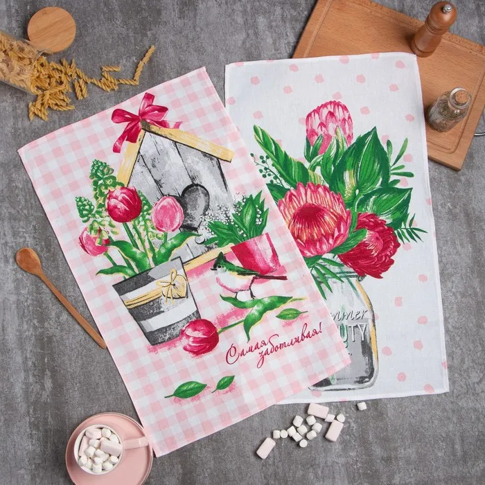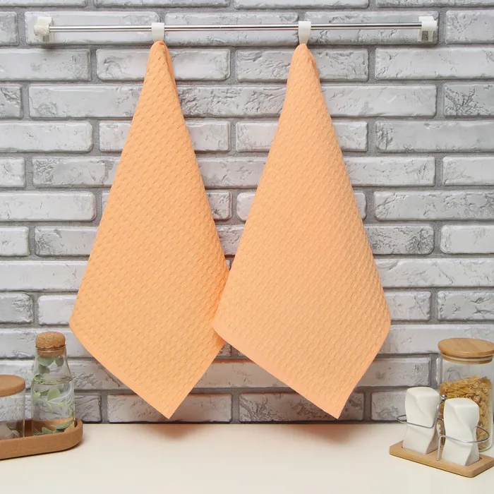 Набор кухонных полотенец «Доляна», коралловый, 35×60 см-2 шт., 100% хлопок, вафля, 220 г/м² — Характеристики