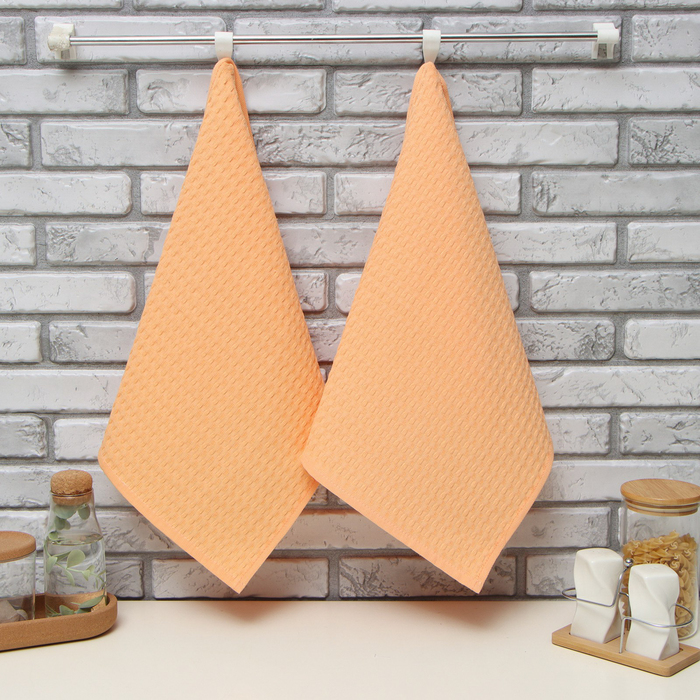 Набор кухонных полотенец «Доляна», коралловый, 35×60 см-2 шт., 100% хлопок, вафля, 220 г/м²