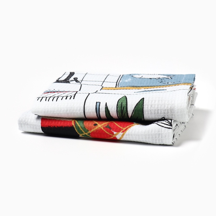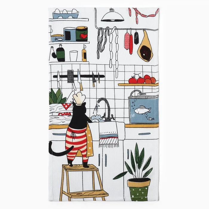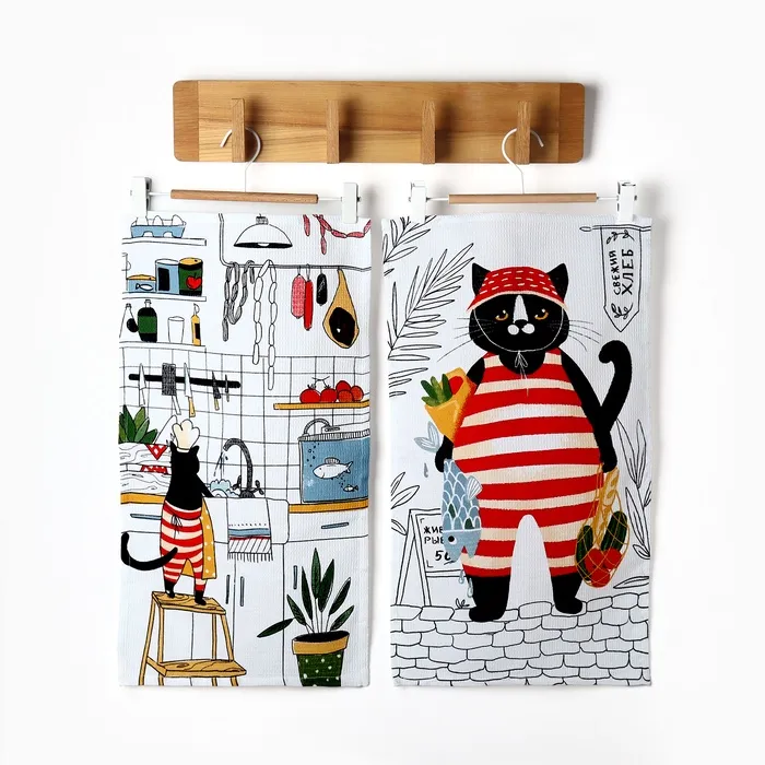 Набор кухонных полотенец Доляна «Котик на кухне» 35х60см-2шт, 100% хл — Характеристики