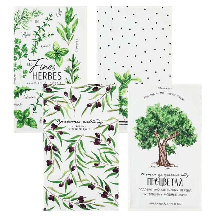 Набор кухонных полотенец Доляна «Красота повсюду», 35х60см-4шт, 100% хлопок — Характеристики