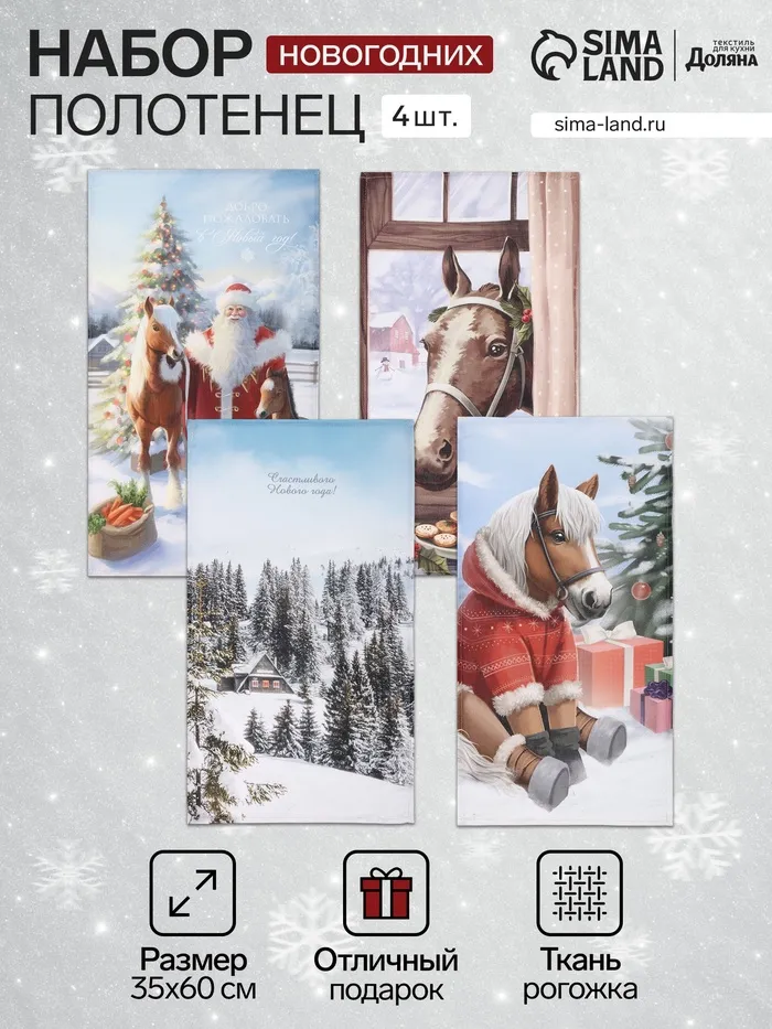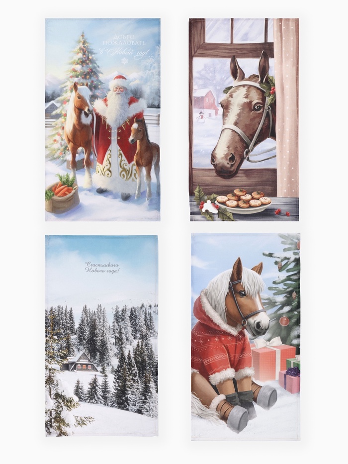 Набор кухонных полотенец «Доляна. Лошадь», 35×60 см-4 шт., 100% хл, рогожка, 160 г/м² — Характеристики
