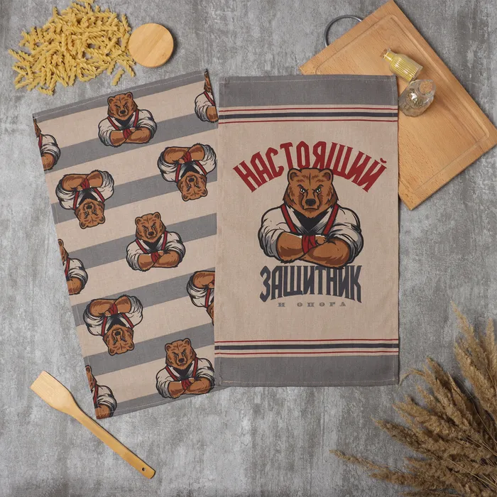 Набор кухонных полотенец Доляна "Настоящий защитник" 2 шт, 35х60 см, рогожка, 100% хлопок, 160г/м2 — Характеристики