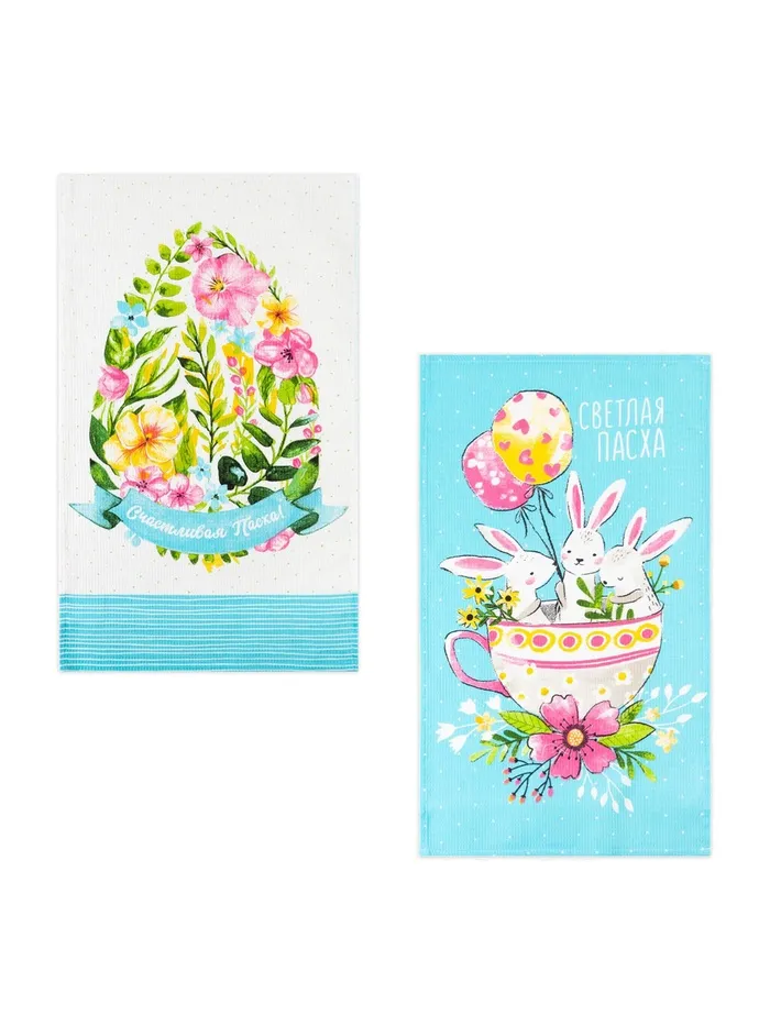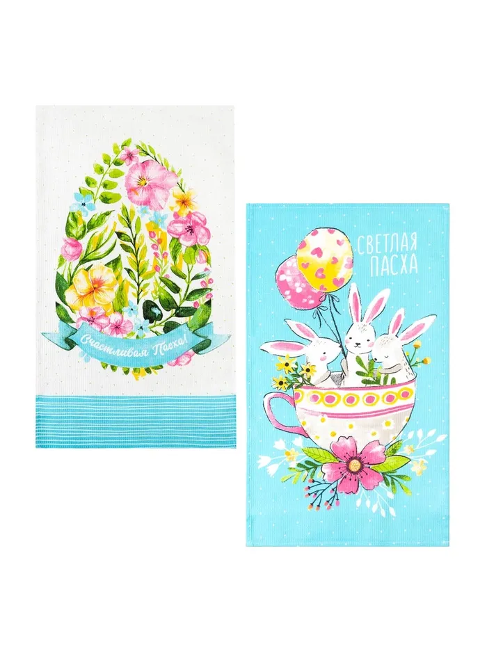 Набор кухонных полотенец Доляна «Пасхальные забавы», 35×60 см - 2 шт., 100% хлопок — Характеристики