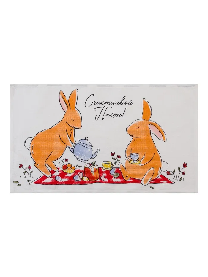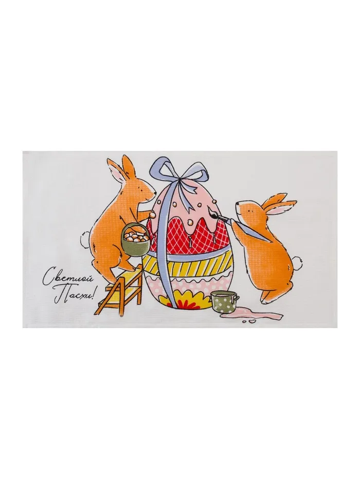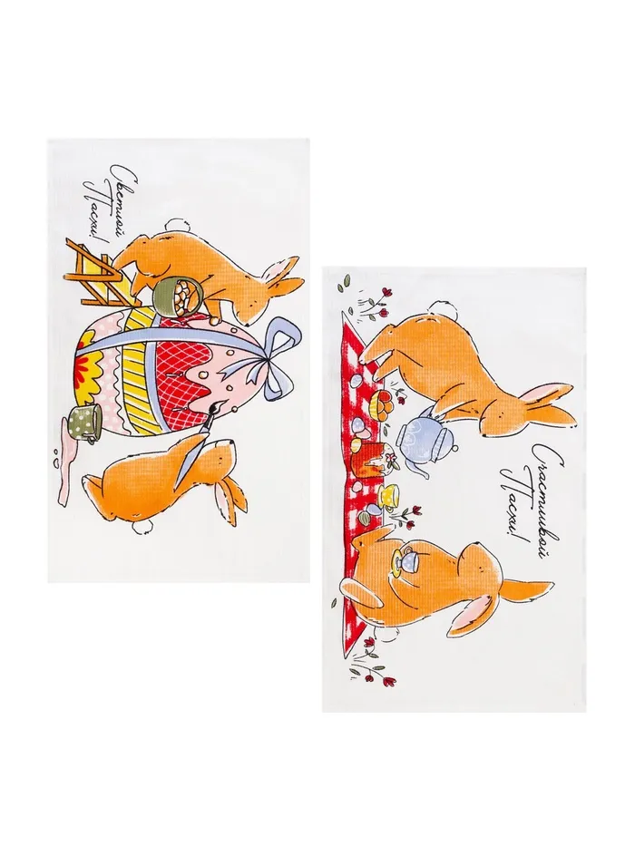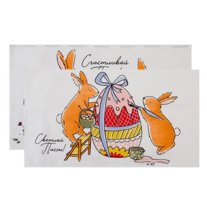Набор кухонных полотенец Доляна «Пасхальные зайчики», 35×60 см-2 шт., 100% хлопок, вафля 160 г/м² — Характеристики