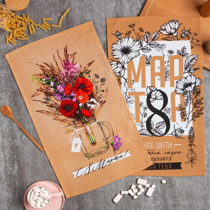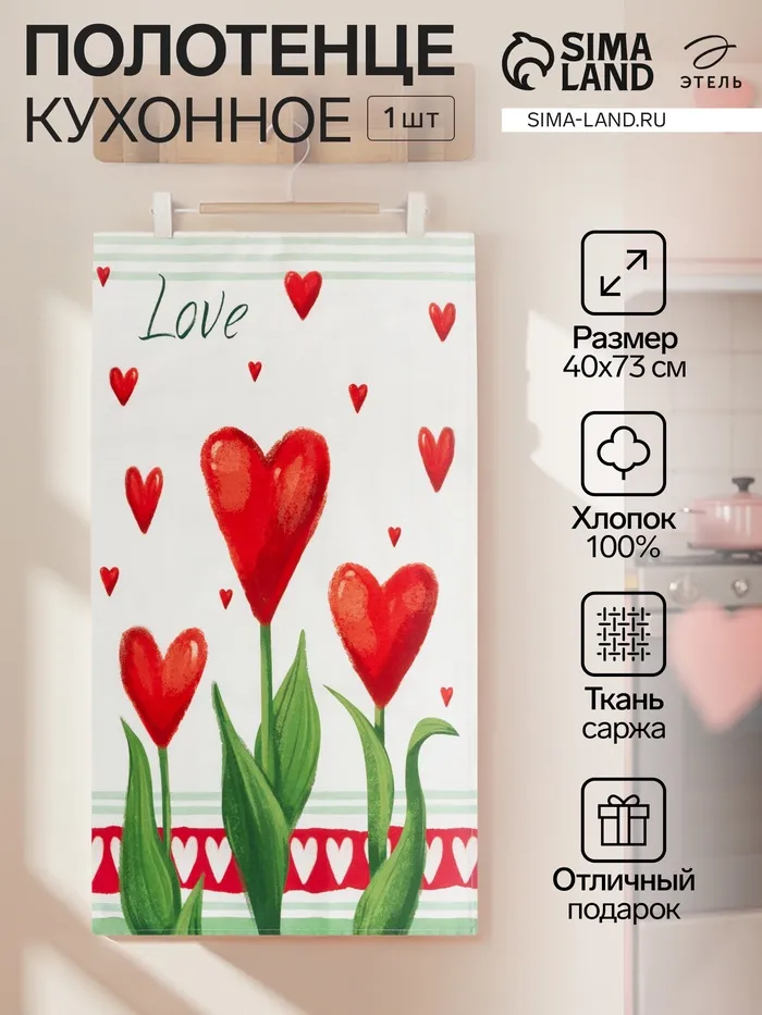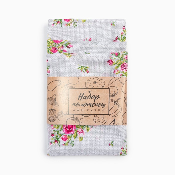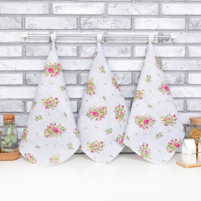 Набор кухонных полотенец Доляна Roses on linen 35х60 см - 3 шт., 100% хлопок, рогожка 164 г/м2 — Характеристики