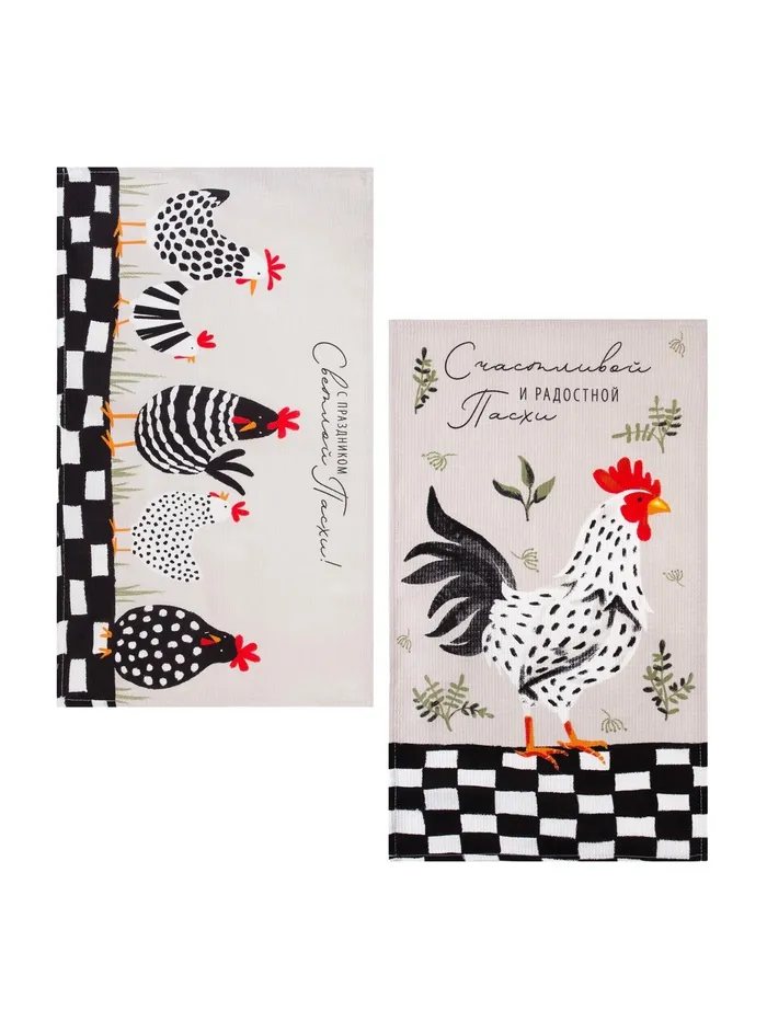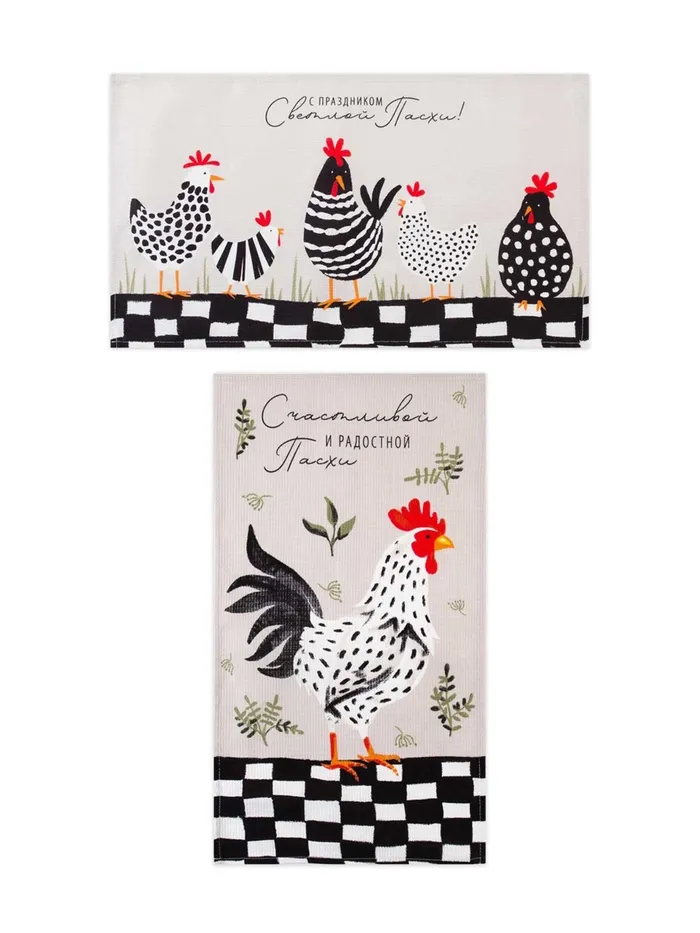 Набор кухонных полотенец Доляна «С праздником Светлой Пасхи», 35×60 см-2 шт., 100% хлопок, вафля 160 г/