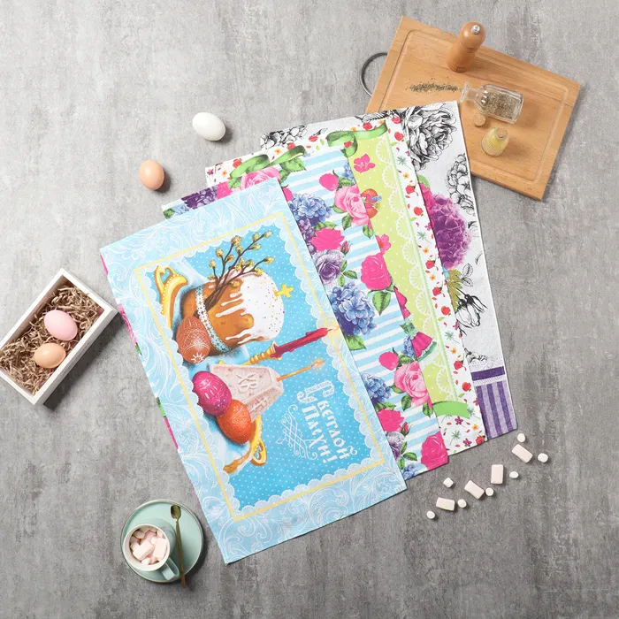 Набор кухонных полотенец Доляна «Счастье» 35×60 см-4 шт., 100% хлопок, рогожка 160 г/м² — Характеристики