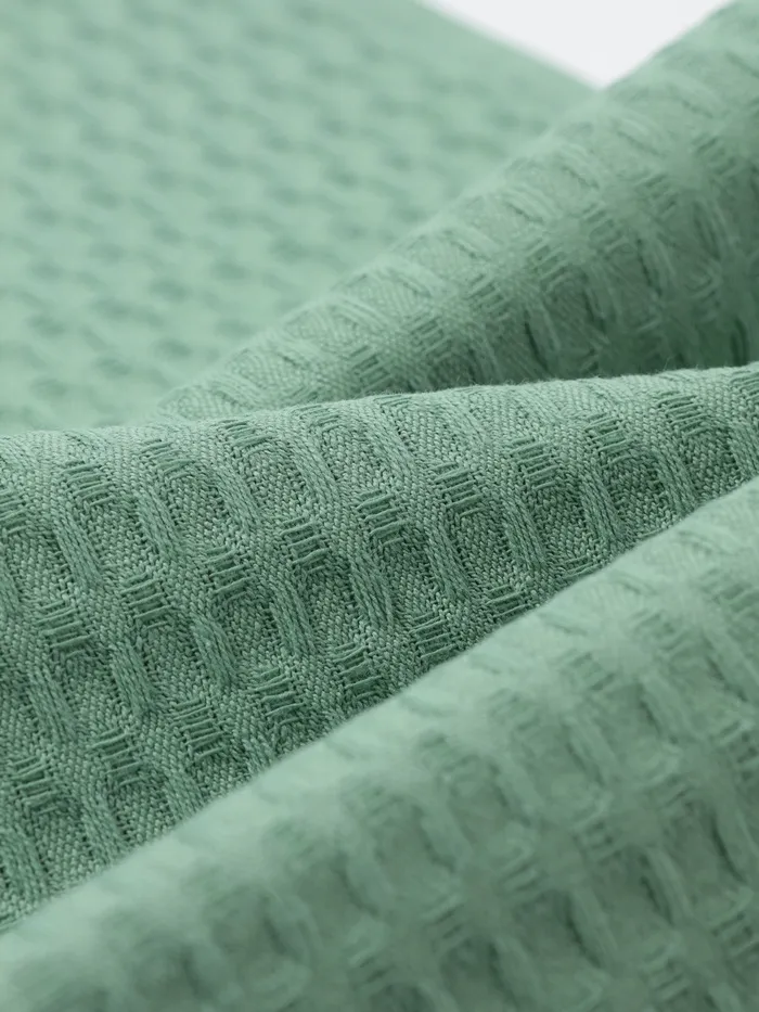 - Вафельная текстура: Вафельная структура полотна обеспечивает отличную впитываемость и быстрое высыхание, предотвращая размножение бактерий.