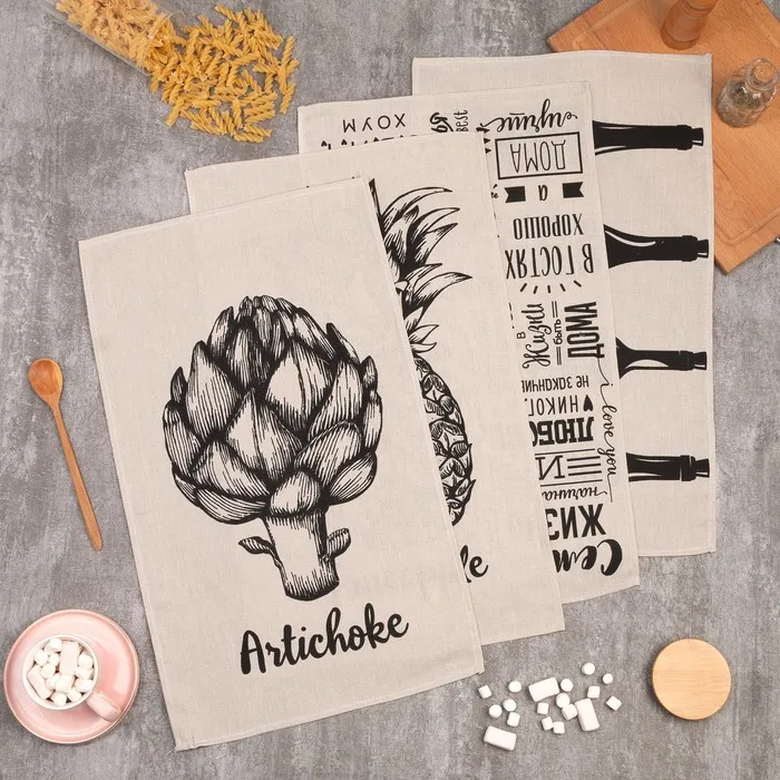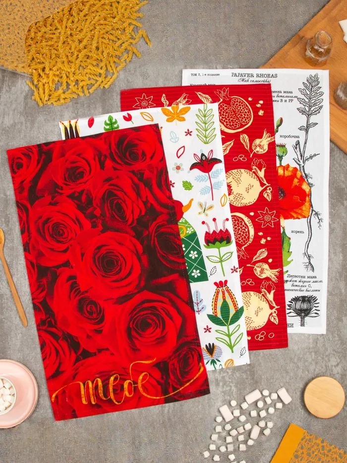 Набор кухонных полотенец Доляна «Тебе», 35×60 см - 4 шт., 100% хлопок — Характеристики