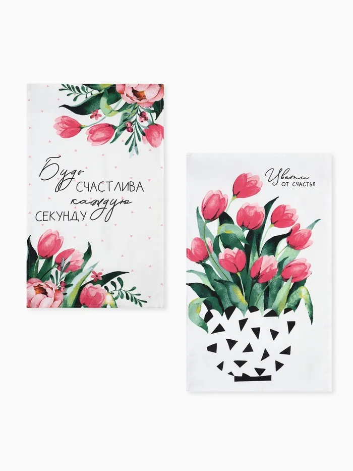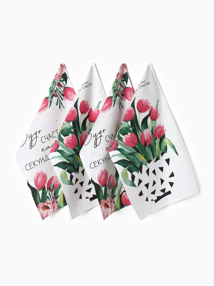 Набор кухонных полотенец Доляна «Весенний праздник», 35×60 см - 4 шт., 100% хлопок — Характеристики
