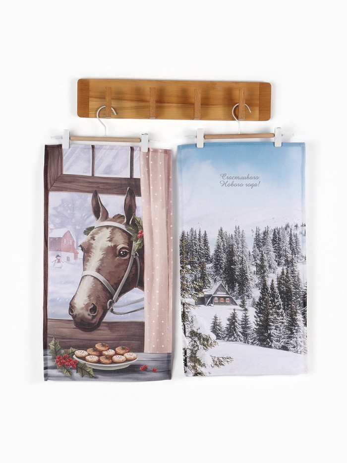 Набор кухонных полотенец «Доляна. Зимняя сказка»: 35×60 см-2 шт., 100% хлопок, рогожка, 160 г/м² — Характеристики