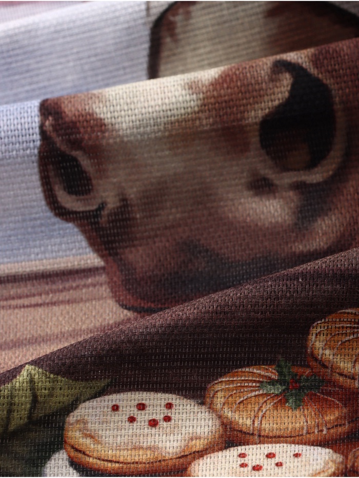 - Стильный дизайн: Ткань рогожка с новогодними мотивами сочетает традиции и современность