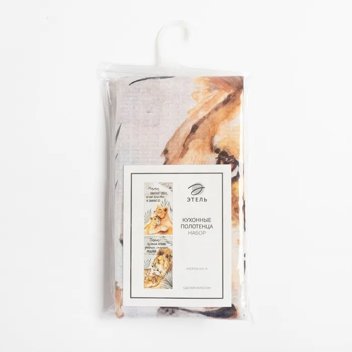 Набор кухонных полотенец Этель «Семейство кошачьих» 40х73см - 2 шт, 100% хлопок, вафля 160 г/м2 — Характеристики