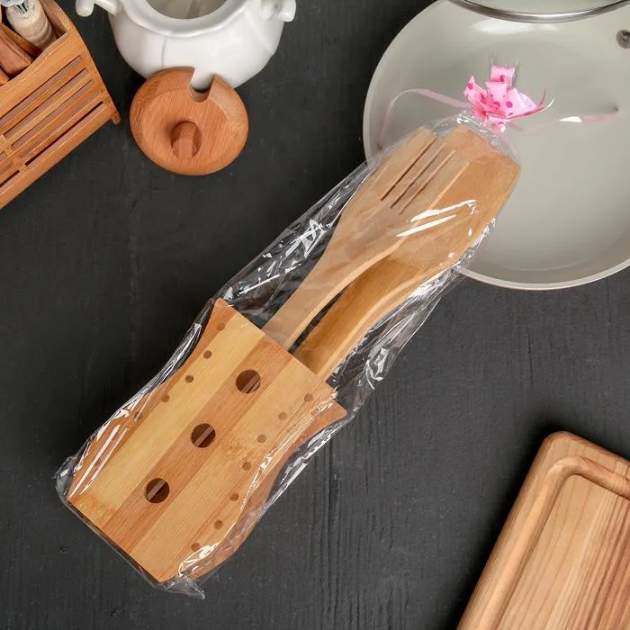 Набор кухонных принадлежностей «Бамбук», 4 предмета, на подставке — Характеристики