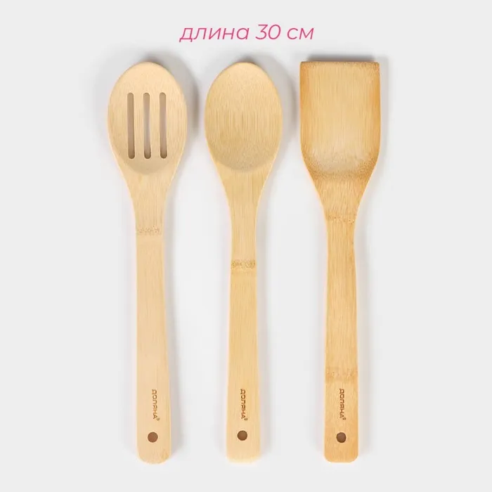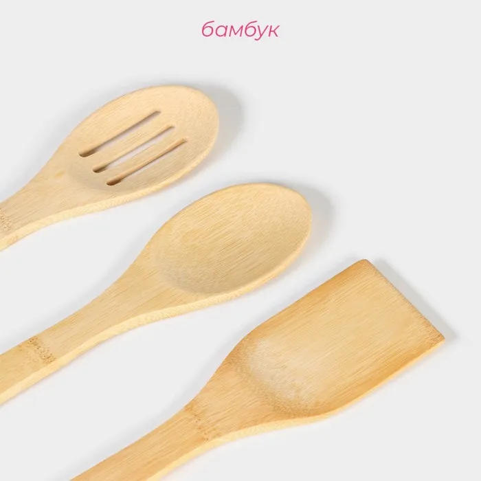 Набор кухонных принадлежностей Доляна «Бамбуковый лес», 3 предмета на подставке: 1 лопатка, 2 ложки — Характеристики