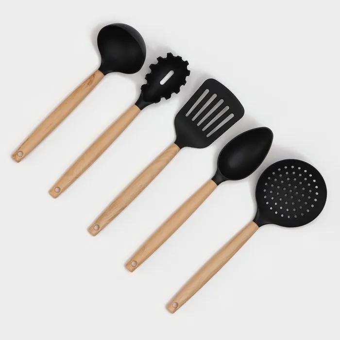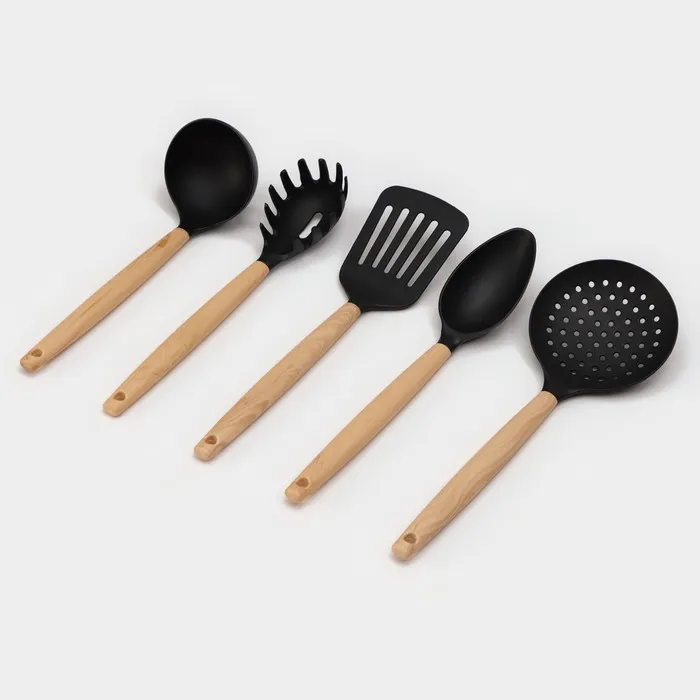 Нейлоновый набор с деревянными ручками из 5 предметов включает в себя: