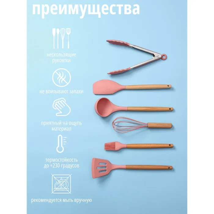 Набор кухонных принадлежностей Доляна «Фаварис», 7 предметов, 34×12.5×12.5 см, розовый — Характеристики