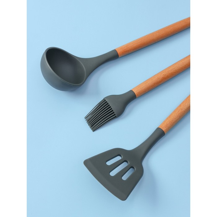 Набор кухонных принадлежностей Доляна «Фаварис», 7 предметов, 34×12.5×12.5 см, серый — Характеристики