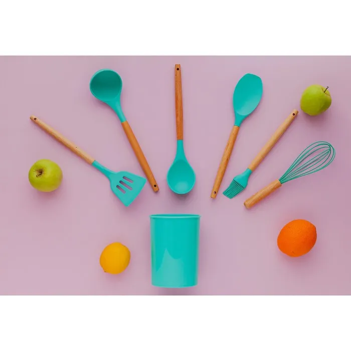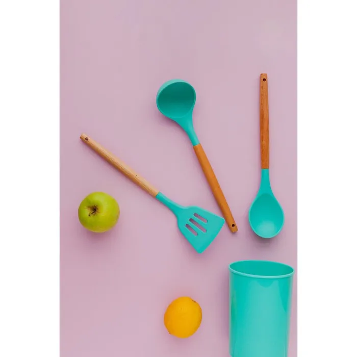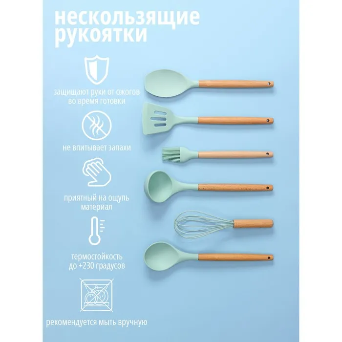 Набор кухонных принадлежностей Доляна «Лиам», 7 предметов, 33×12.5×12.5 см, бирюзовый — Характеристики