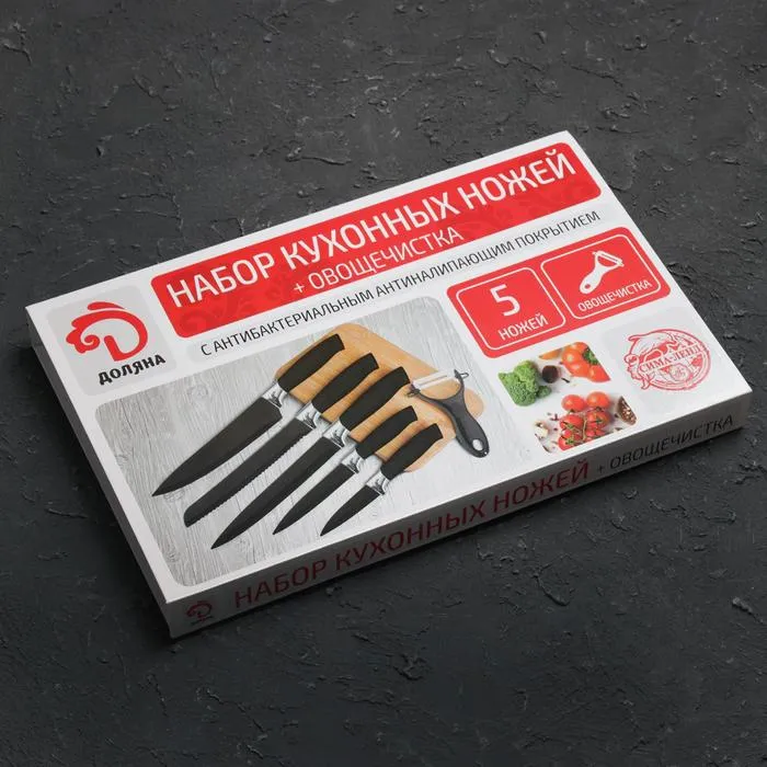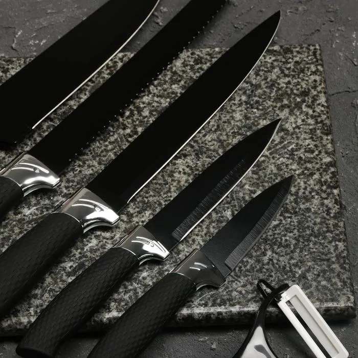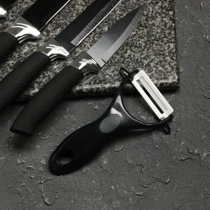 Набор кухонных принадлежностей Доляна «Супер-блек», 6 предметов: ножи 19 см, 23 см, 32 см, 32 см, керамическая овощечистка, 32×4 см, чёрный — Характеристики