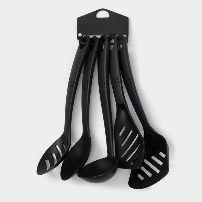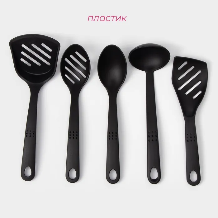 Набор кухонных принадлежностей Доляна «Точки», 5 предметов, чёрный — Характеристики