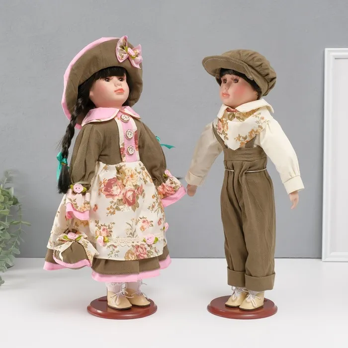 Набор кукол коллекционных «Пара: Марина и Паша, зелёный наряд с цветами», 2 шт., 40 см — Характеристики