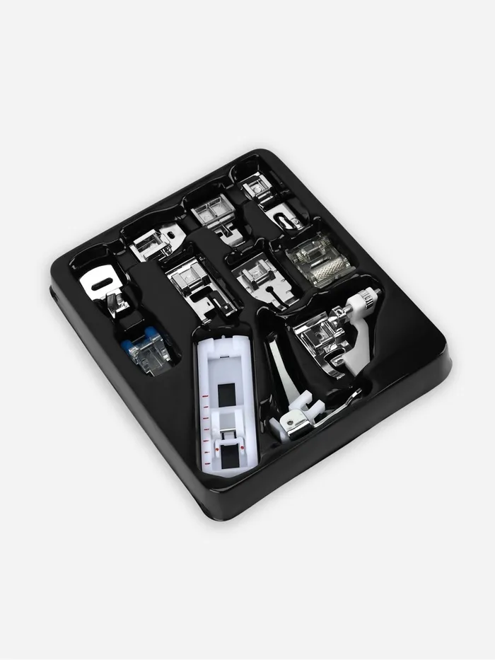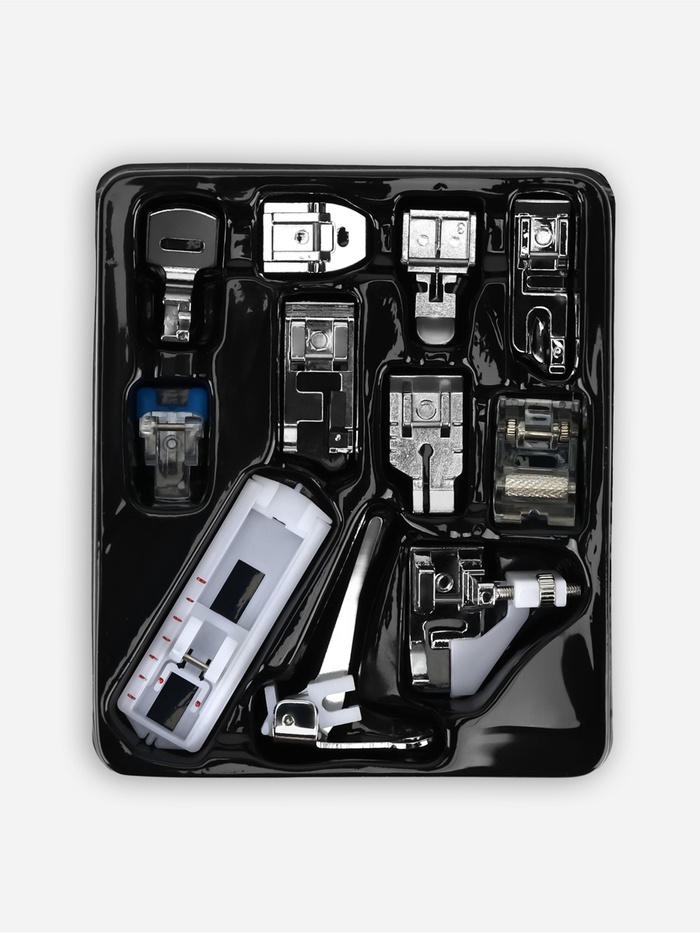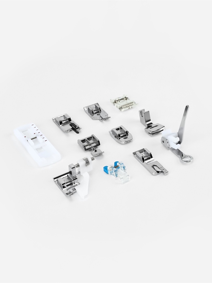 В набор входят 11 лапок для выполнения определённых задач и строчек. Набор поможет упростить выполнение основных и декоративных операций, и улучшить качество работы.
