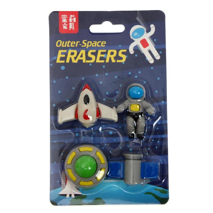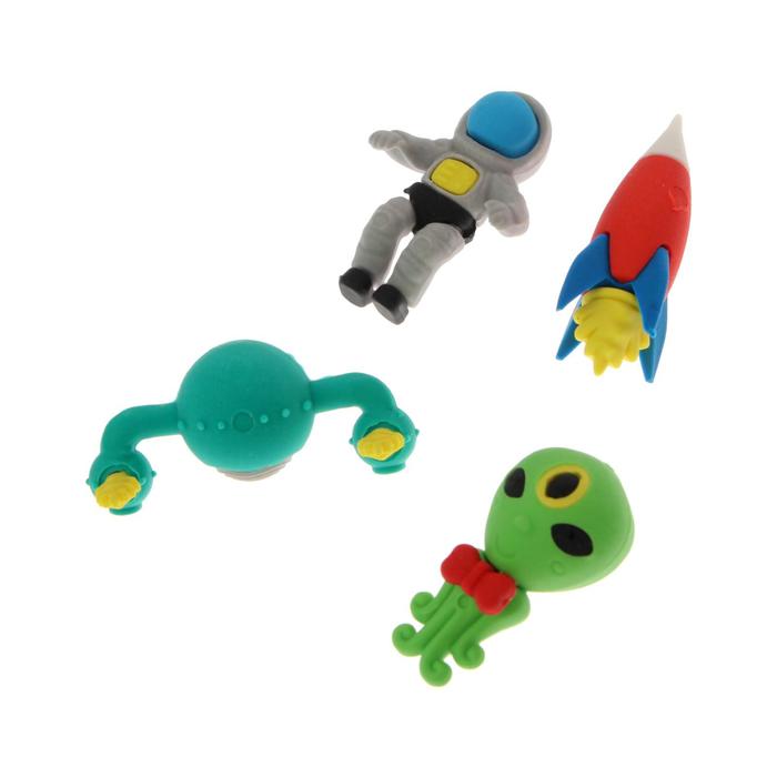 Набор состоит из четырех ластиков в форме космических персонажей. Ластики обеспечат лёгкое и чистое стирание без повреждения поверхности бумаги и без образования бумажной пыли.