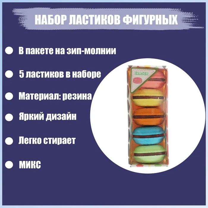 Набор ластиков фигурных "Макарун", 5 штук — Характеристики