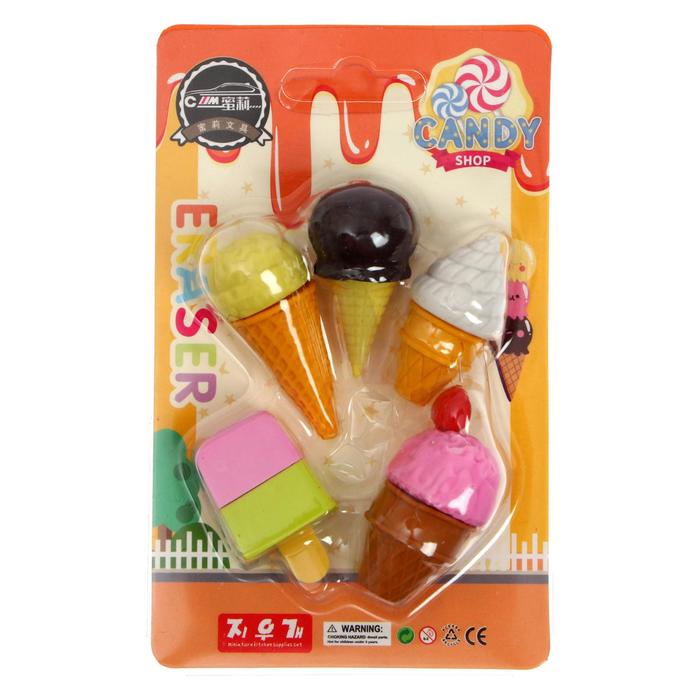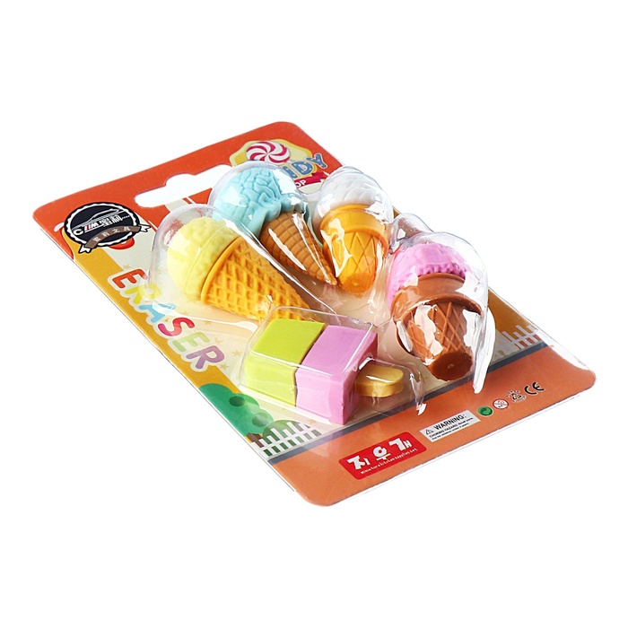 Набор состоит из четырех ластиков в форме Пирожного или Мороженого. Ластики обеспечат лёгкое и чистое стирание без повреждения поверхности бумаги и без образования бумажной пыли. Поставляются в блистере с европодвесом.
