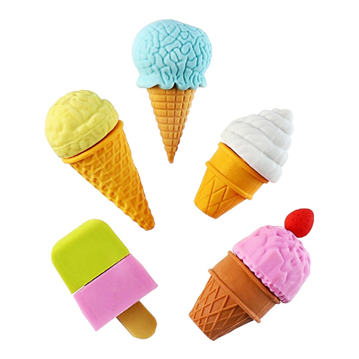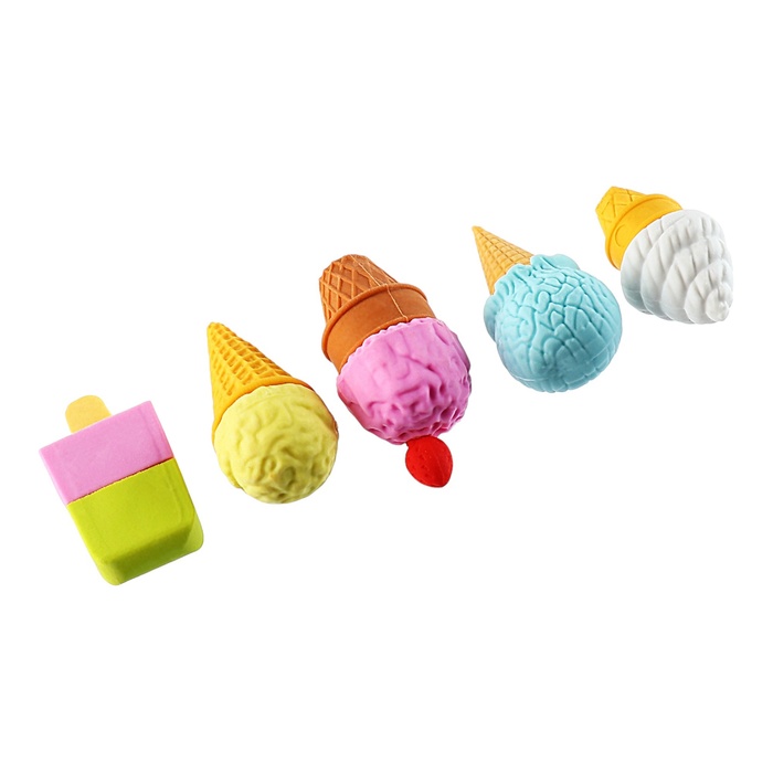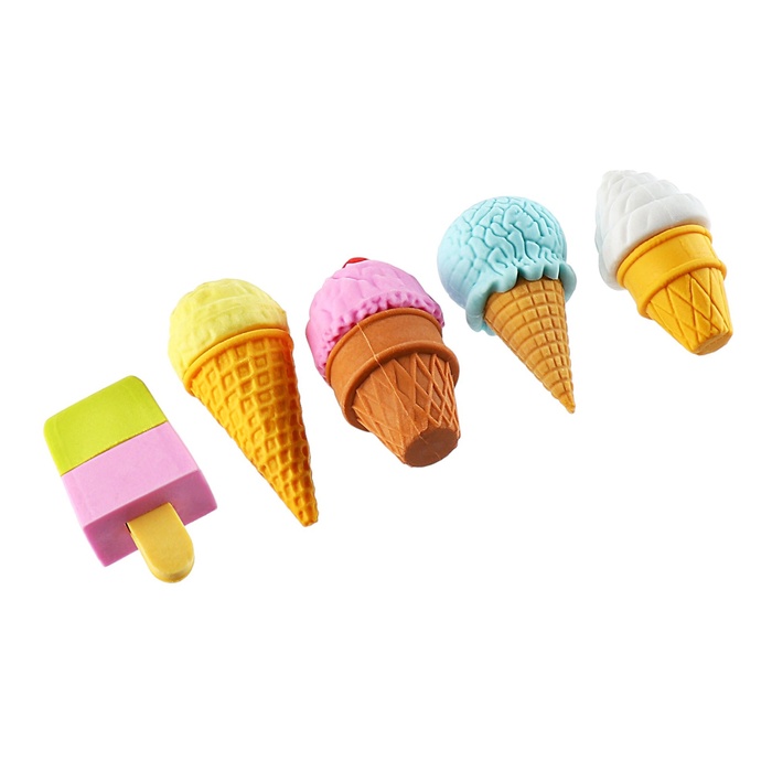 Фигурные ластики выполнены в форме Пирожного или Мороженого, что позволяет превратить процесс стирания в игру. Подходят для удаления надписей, сделанных чернографитными карандашами.