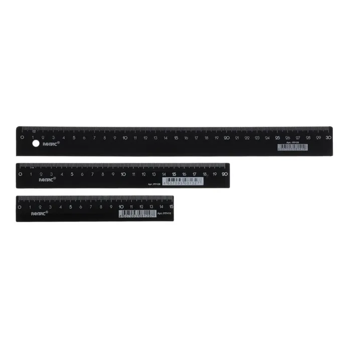 Набор линеек 3 штуки, Calligrata 15/20/30 см непрозрачные, чёрные — Характеристики