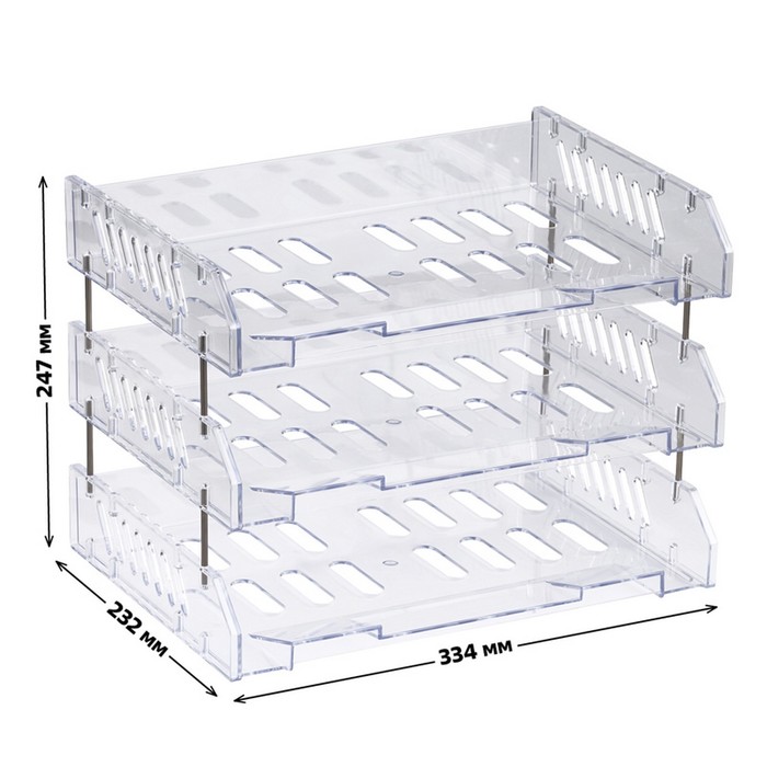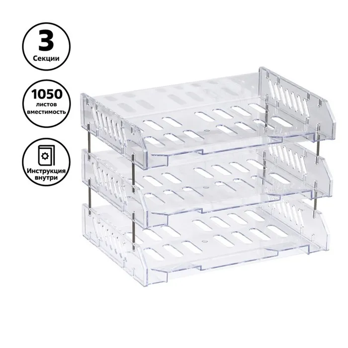 Набор лотков для бумаг горизонтальных с широкой загрузкой, «Сити», 3 шт., на металлических стержнях, прозрачный — Характеристики