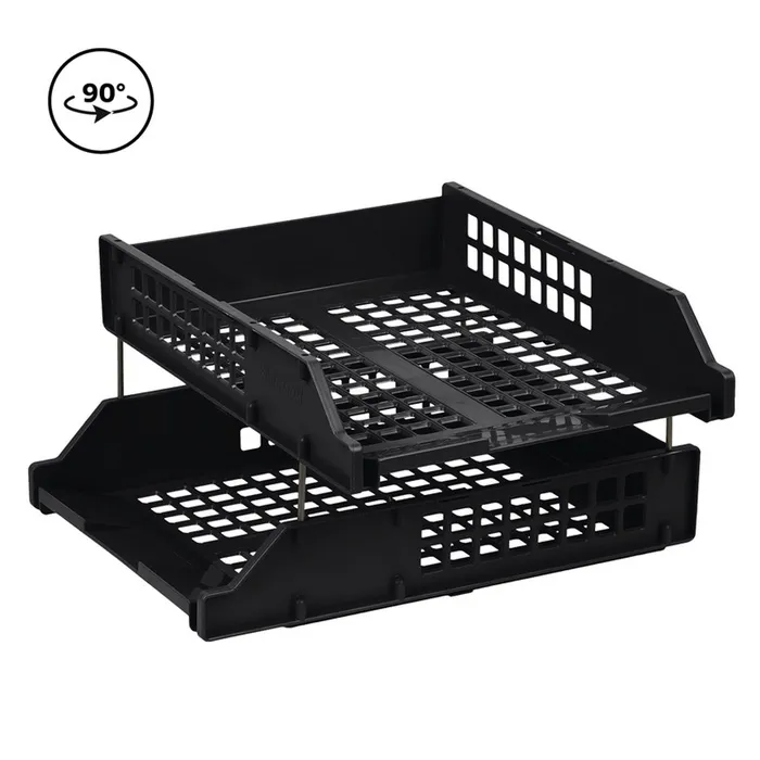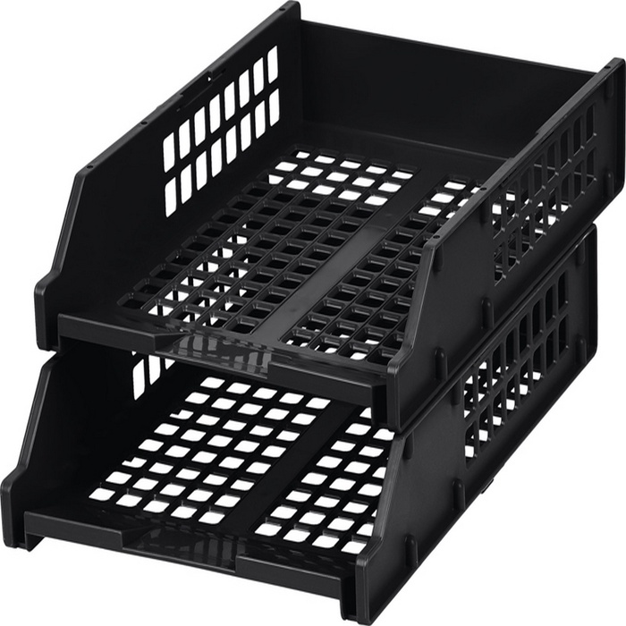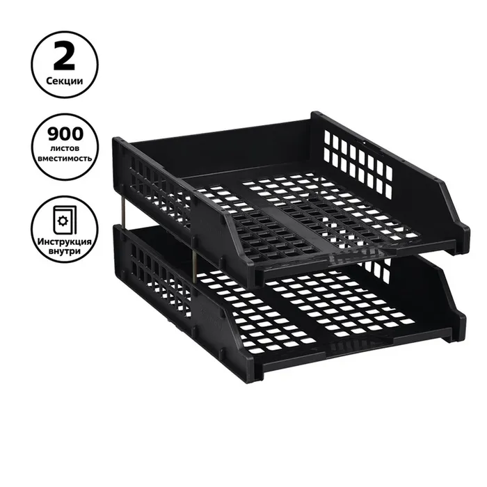 Набор из 2-х горизонтальных лотков для бумаг формата А4. Функциональная конструкция позволяет вмещать большое количество документов. Лотки надёжно фиксируются друг на друге металлическими стержнями. Конструкция предусматривает возможность установки верхнего лотка на 90 градусов. Прочный, устойчивый корпус. Изготовлен из качественного полистирола. Упакован в термоусадочную пленку, поставляется в разобранном виде. Инструкция по сборке в комплекте.