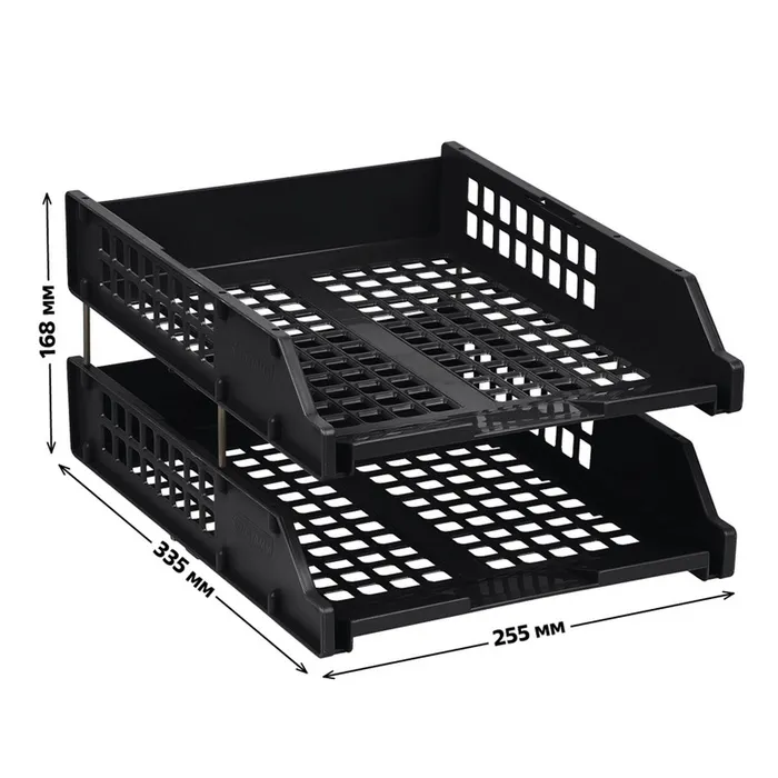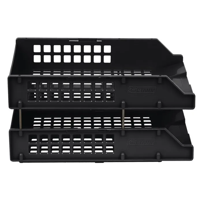 Набор лотков для бумаг горизонтальных Стамм STRONG, 2 штуки, на металлических стержнях, чёрный — Характеристики