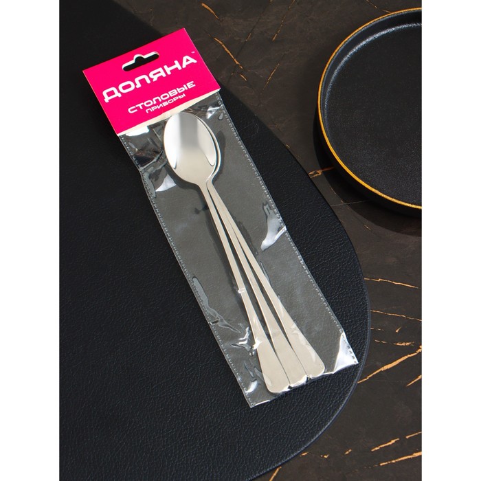 Набор ложек для ice tea из нержавеющей стали Доляна, длина 19.4 см, толщина 2.2 мм, 410 сталь, 3 шт., цвет серебряный — Характеристики