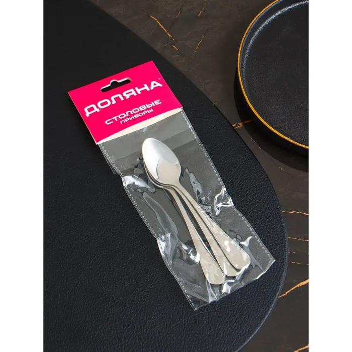 Набор ложек кофейных из нержавеющей стали Доляна, h=12.4 см, толщина 2.2 мм, 410 сталь, 3 шт., серебристый — Характеристики