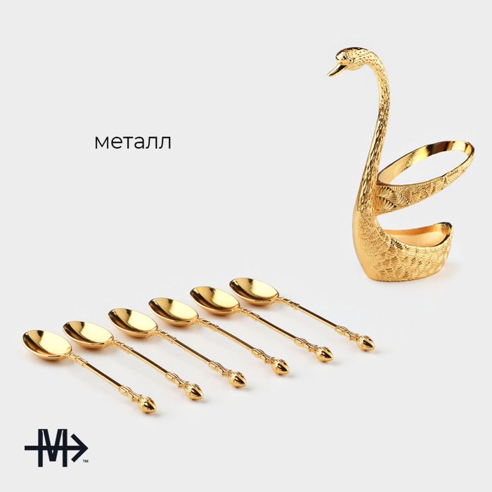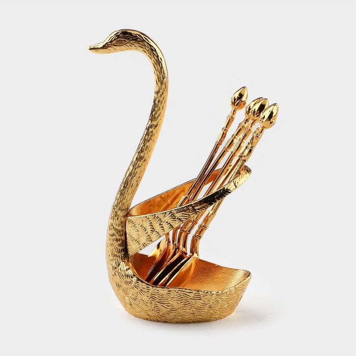 Набор ложек Magistro «Золотой лебедь», 7.5×5×15.3 см, 7 предметов, на подставке, металл, цвет золотой — Характеристики