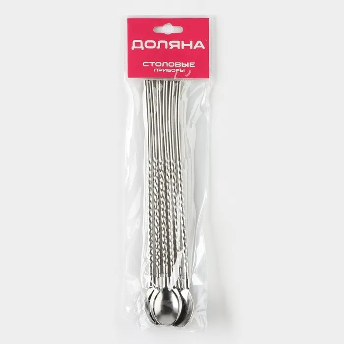 Набор ложек-трубочек барных из нержавеющей стали Доляна «Витые», длина 22 см, 6 шт., серебристый — Характеристики
