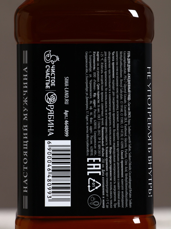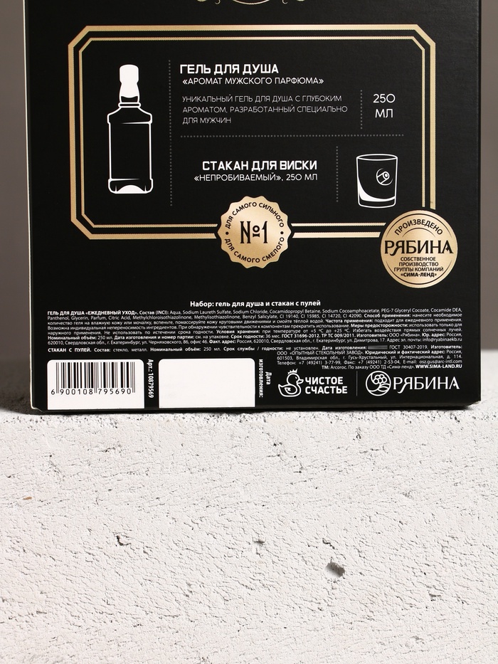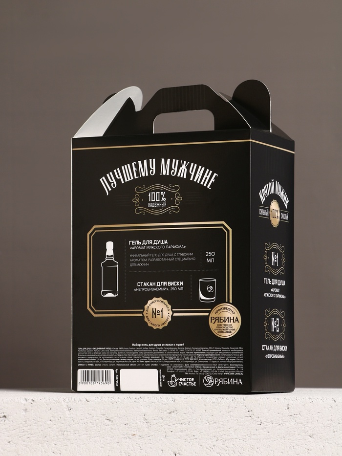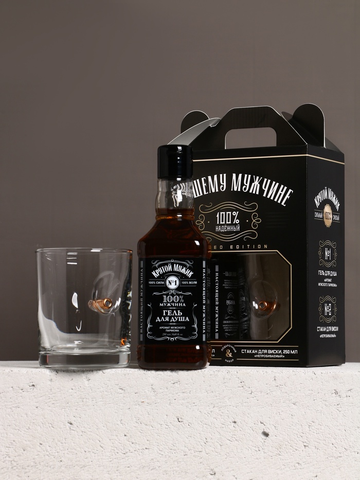 Набор «Лучшему мужчине»: гель для душа виски 250 мл и стакан с пулей, Чистое счастье — Характеристики