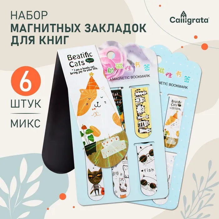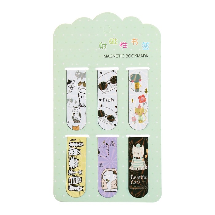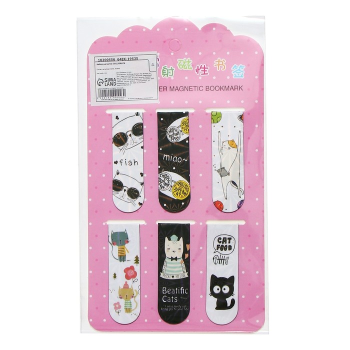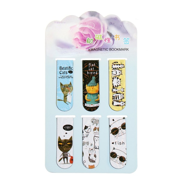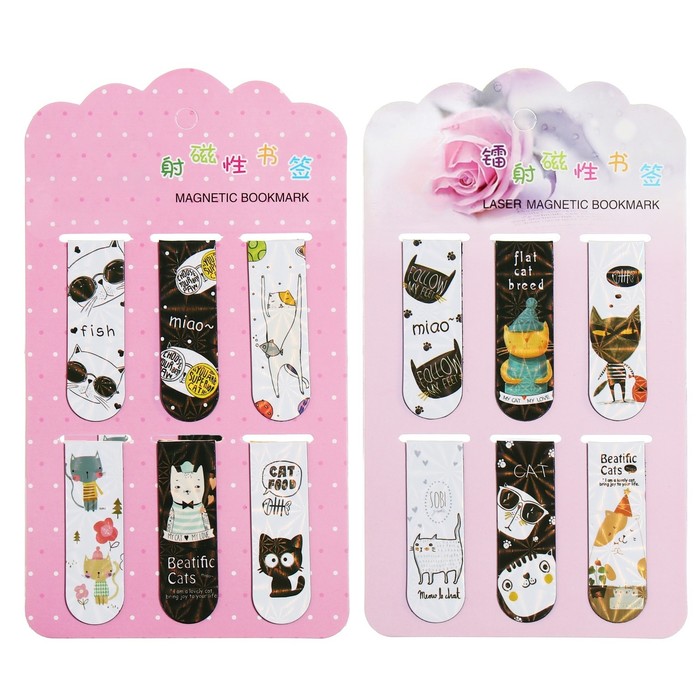 Набор магнитных закладок для книг Calligrata 6 штук, "Котики", МИКС — Характеристики