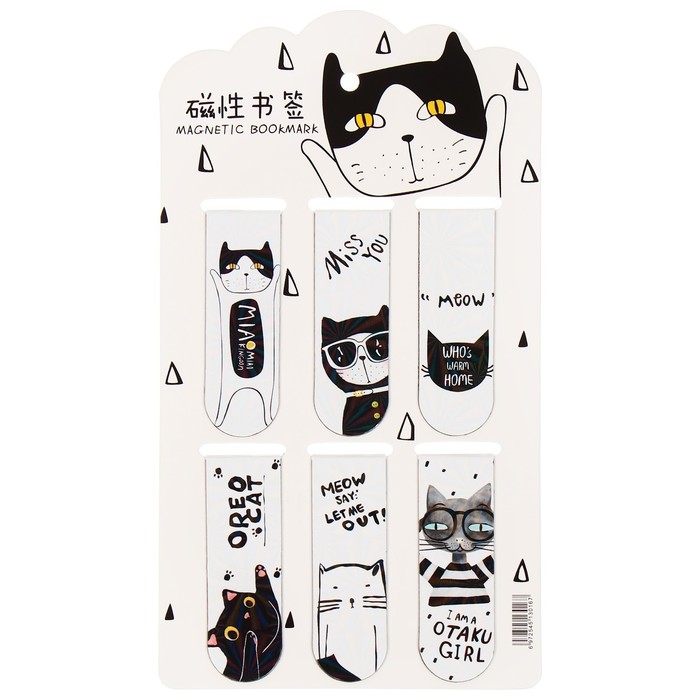 Набор магнитных закладок для книг Calligrata «Кошки», 6 шт., МИКС — Характеристики