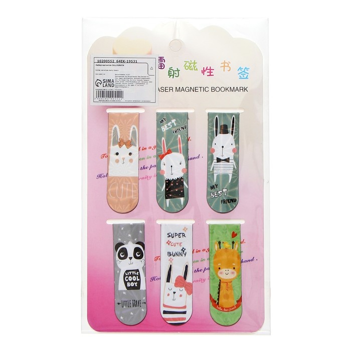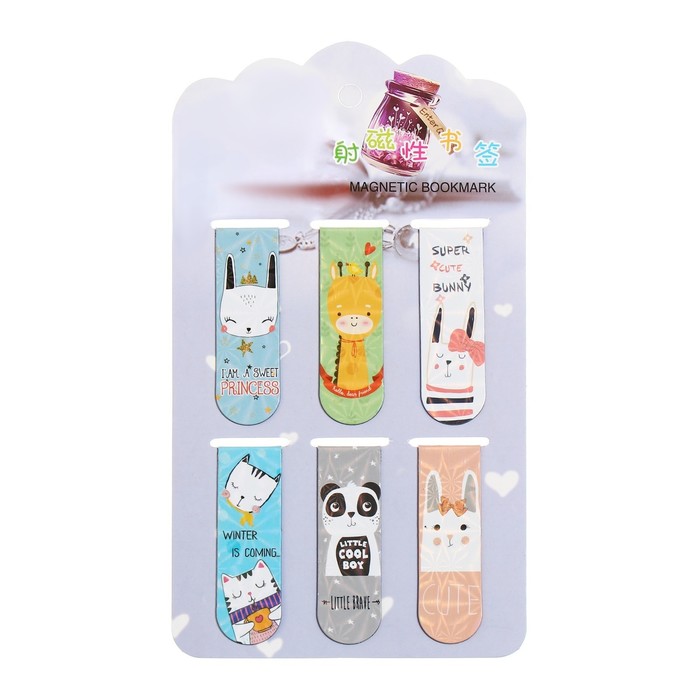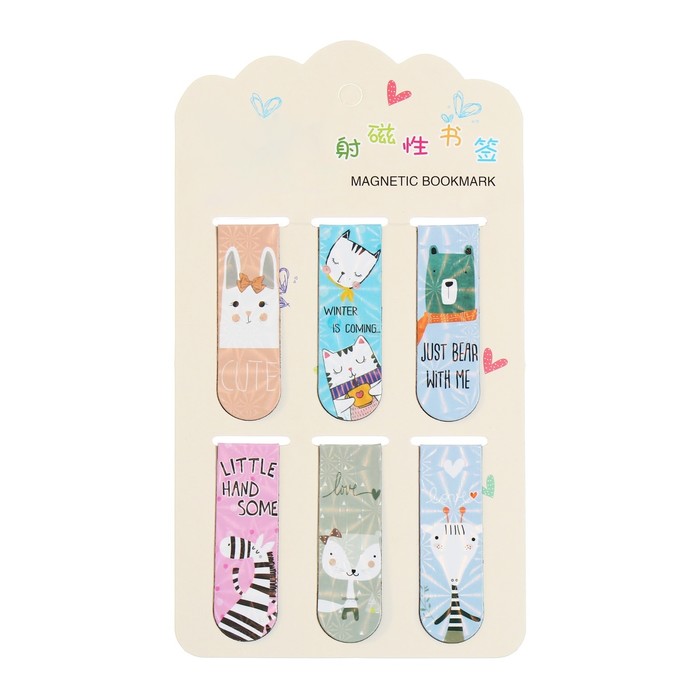 Набор магнитных закладок для книг Calligrata «Зверушки»,6 шт., МИКС — Характеристики