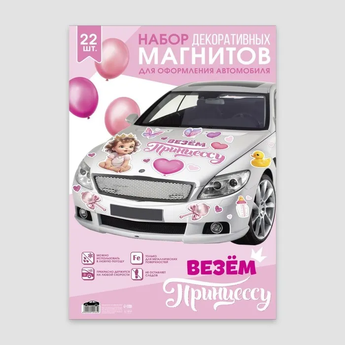 Набор магнитов на авто «Везем принцессу», на выписку, 42 см х 29,7 см — Характеристики