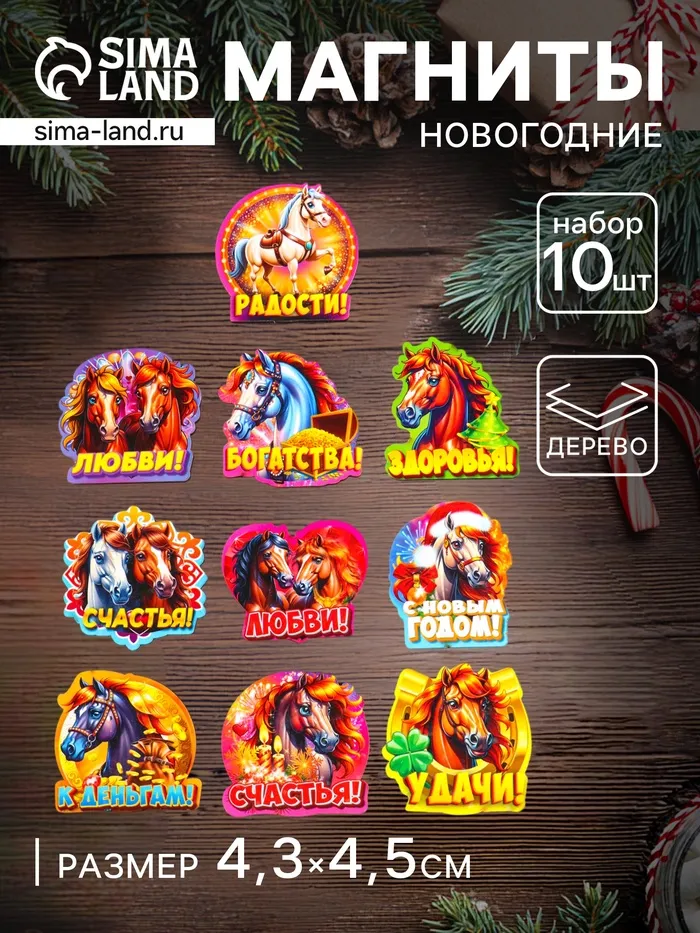 Набор магнитов на холодильник 10 шт. «Лошадь новогодняя», размер 1 магнита 4.3×4.5 см — Характеристики