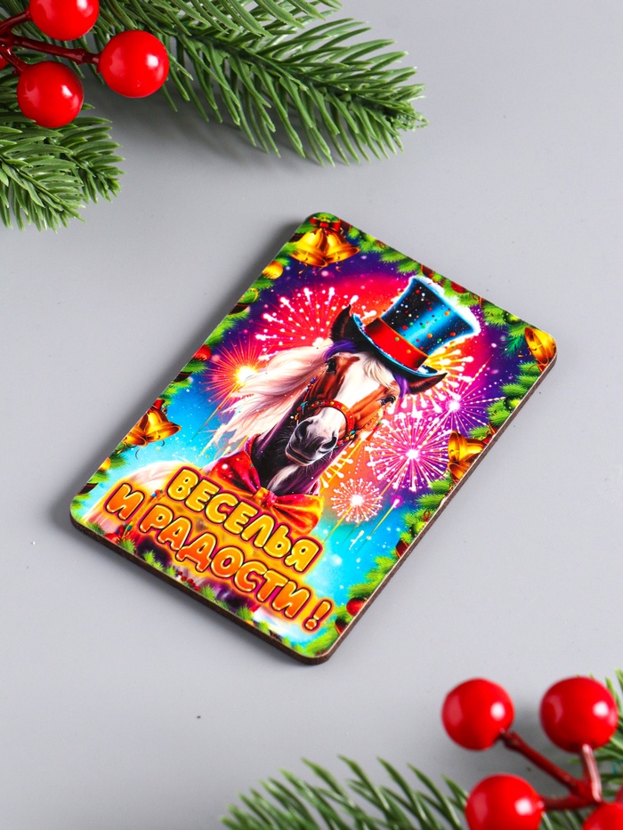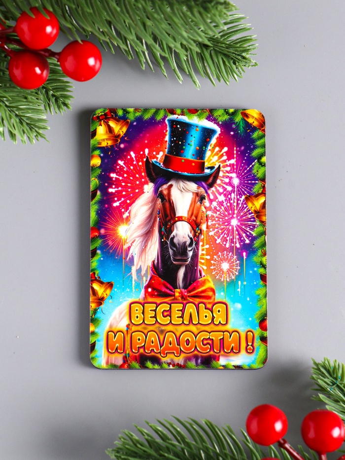 Набор магнитов на холодильник 3 шт. «Конь новогодний: Достатка в дом, богатства, веселья и радости» — Характеристики