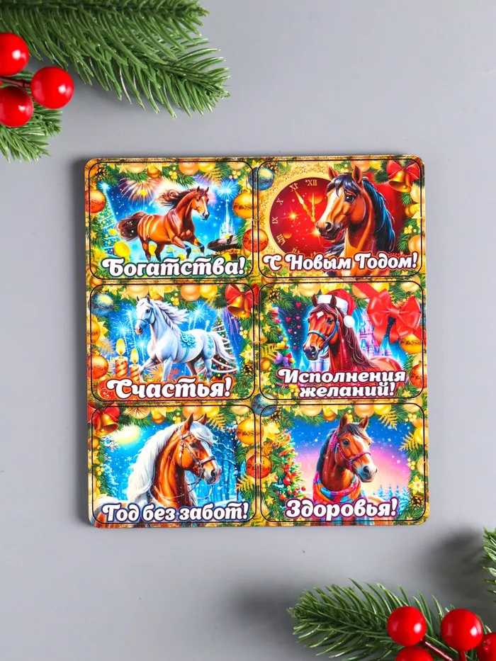 Набор магнитов на холодильник 6 шт. «Конь новогодний: Богатства», 6×4.5 см — Характеристики