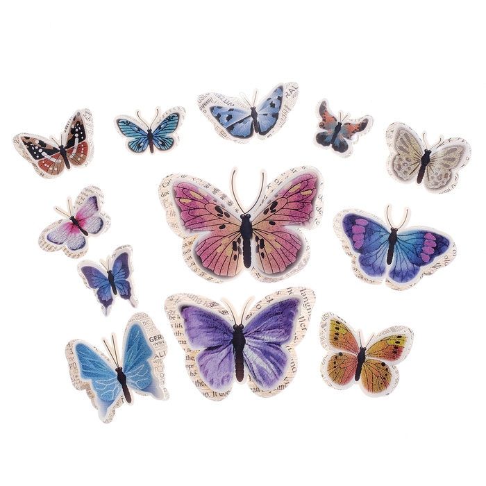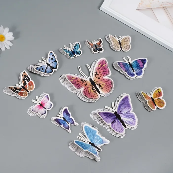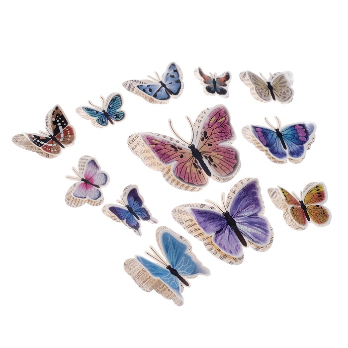Набор магнитов на холодильник «Арт Узор. Газетные», 12 шт., картон, двойные крылья, h=4-10 см